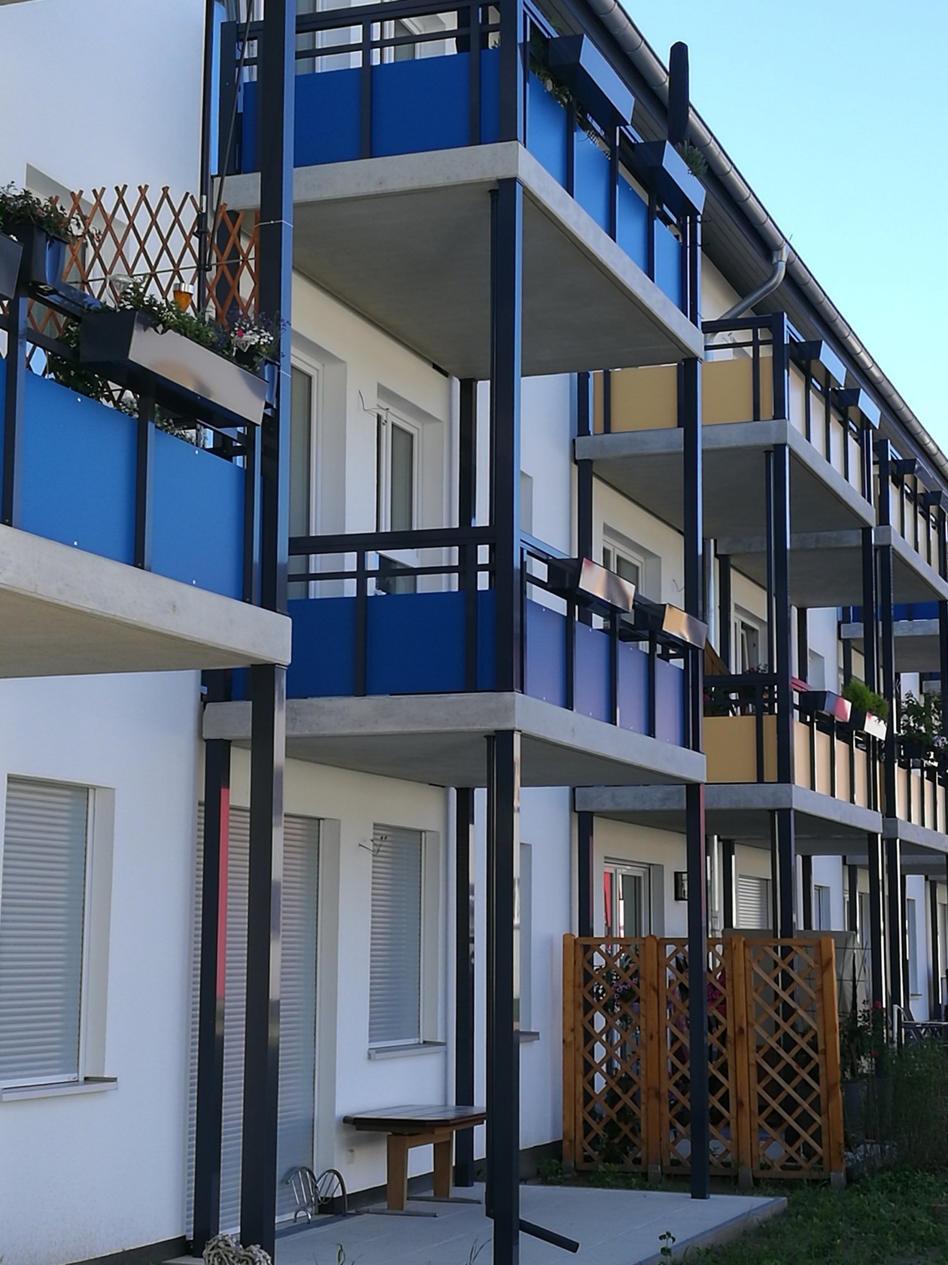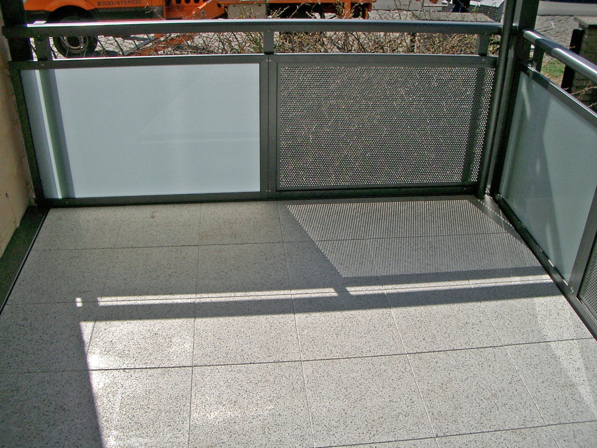 Als Geländerfüllung stehen VSG Sicherheitsglas, Trespa und Alu-Lochblech zur Verfügung. Diese werden in Aluminiumleisten eingerahmt, um die Hochwertigkeit der Balkone zu unterstreichen.